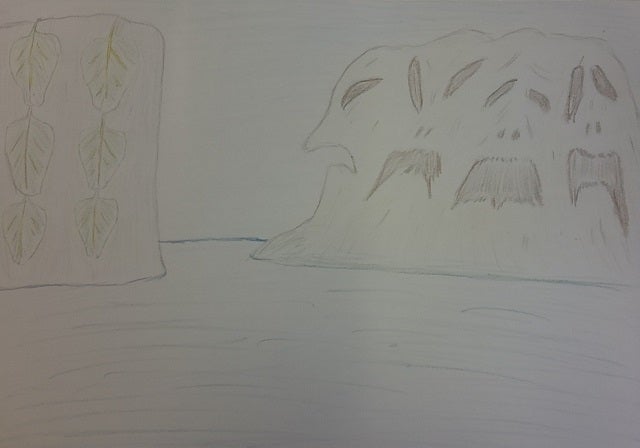 特徴は――、島の表面が崩れたような不気味な顔っぽいものが四つ並んでいるというもの。その隣にも島があって、巨大な葉が数枚連なっている物。